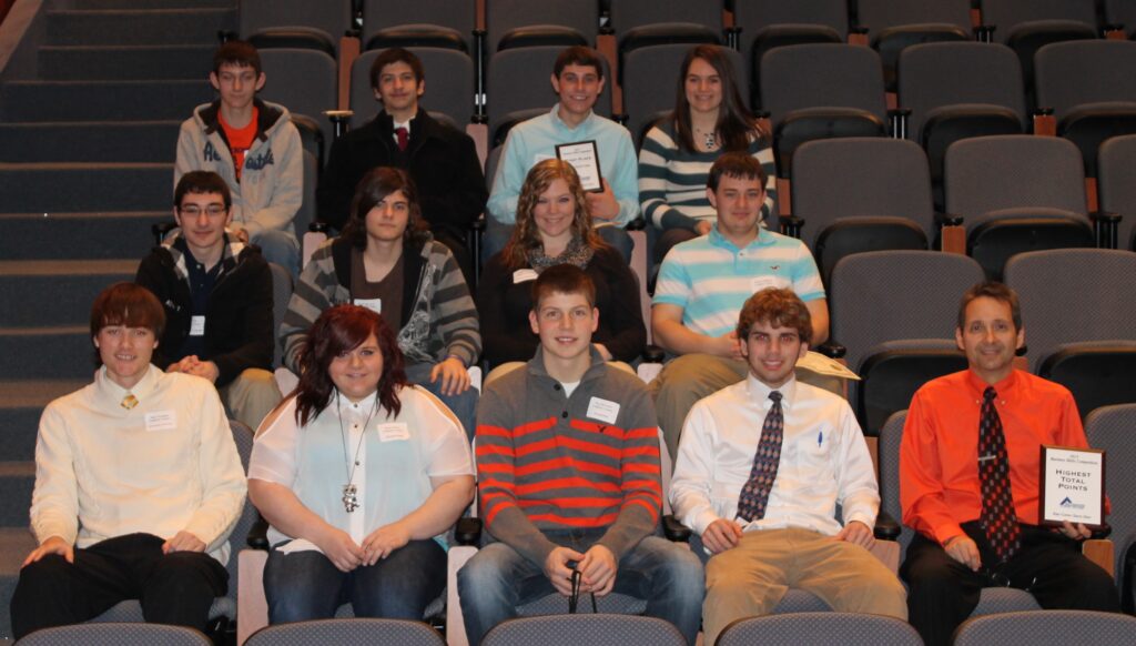 Several of the events involve an objective exam while others have a hands-on component. The top two scores from each event are recognized at the awards ceremony. Each school’s individual competition scores are totaled to find out the school with the most points.