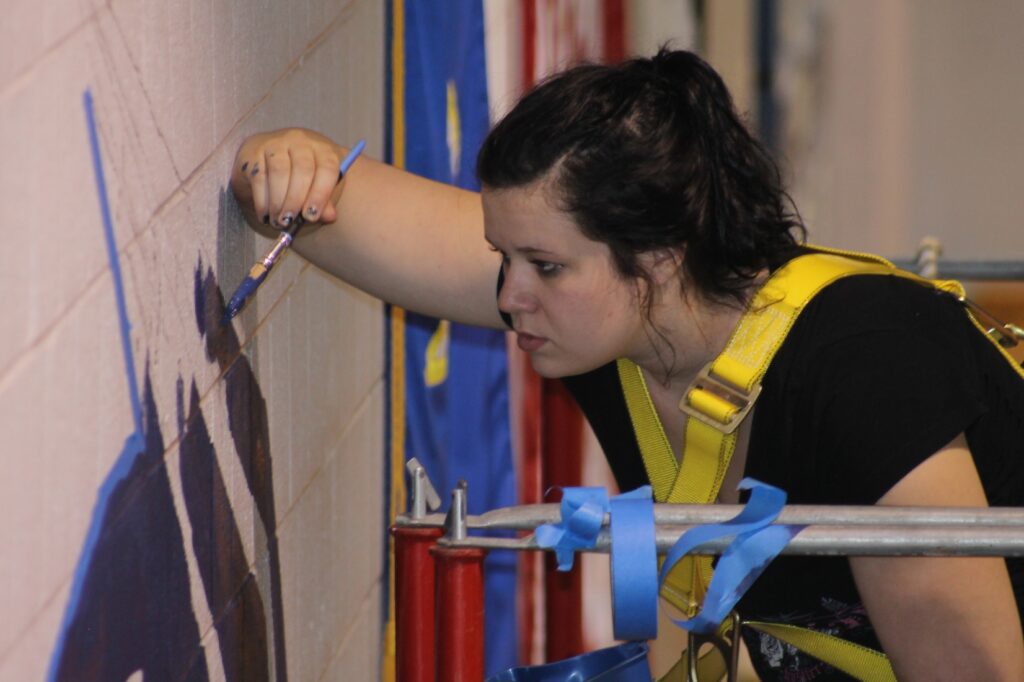 In addition to a new gym floor and new bleachers, Joseph Deaton Gymnasium at Southeastern Illinois College has a new mascot decorating the gym wall thanks to some talented students.