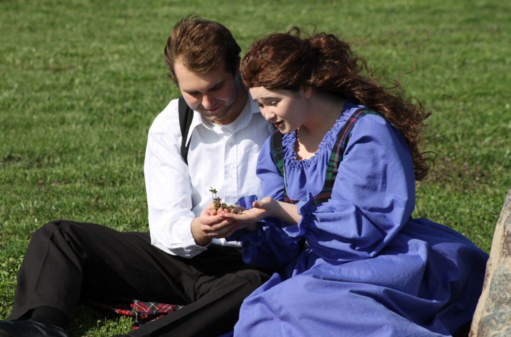 The story begins as two American tourists stumble upon Brigadoon, a mysterious Scottish village that appears for only one day every century. One of the tourists, Tommy (played by Sean Partain of Harrisburg), one of the tourists, falls in love with Fiona (Salena Russell of Harrisburg), a young woman from Brigadoon. As the story unfolds, Tommy is eventually forced to choose between a new life in Brigadoon with his love Fiona, or return to the safety of his modern-day life at the cost of never seeing the mysterious village of Brigadoon again.