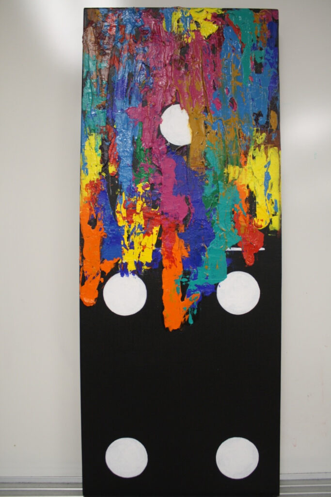 “Depicting a theme of black dominoes as my canvas, I use contrasting elements of black and white with color to represent Alzheimer’s powerful destruction of the aging mind,” said Hicks. “I chose dominoes as my canvas because of the popularity over the years of this particular mind game. Dominoes can be a simple or complex game, just like the mind is simple in form at birth, yet ready to grow tremendously into great complexity.”