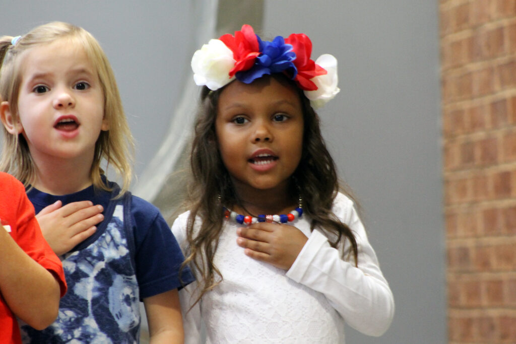 The National Anthem was sung by SIC Spanish and English instructor Jennifer Roehm and the Pledge of Allegiance was led by the Pre-K class of the Mary Jo Oldham Center for Child Study. Dean of Students and Enrollment Services Chad Flannery welcomed the audience to the ceremony. SIC students also gave patriotic tribute. Kayla DePriest played the piano while Emily Green sand Amazing Grace. During this time a picture presentation by Larrisa Bond and Tori Dewar played. Brooklyn Lewis gave the benediction at the end of the ceremony.