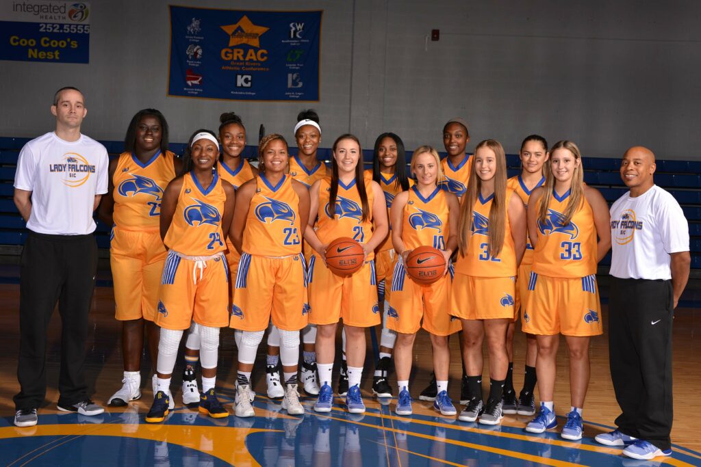 Falcon Basketball is underway, and the Southeastern Illinois College women’s team it hitting it hard with a record of 4-1 for the season as of Nov. 14. Pictured (front row, l-r) are Jolia Spot (Houston), Mikayla Thompson (Morganfield, Ky.), Emma O’Donoghue (Limerick, Ireland), Bree Matthews (Melbourne, Australia), Olivia Klaman (Melbourne, Australia), Kate Stainer (Brisbane, Australia) and Assistant Coach Steven Kenner. Back Row (l-r): Head Coach Jack Trosper, Gabby Dortch (Berrian Springs, Mich.), Markayla Vander (Grand Rapids, Mich.), Jocelyn Taylor (Grand Rapids, Mich.), Lala Humphries (Minneapolis, Minn.), Dejah Quick (Eglin, Fla.) and Shay’Lee Dayman (Adelaide, Australia). The Lady Falcons’ next home game is Nov. 19 at 1 p.m. against Jefferson College in SIC’s Joseph Deaton Gymnasium.