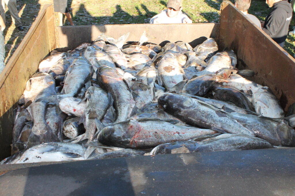 At the close of the tournament, over 100 fish had been weighed totaling 2,046 pounds. These fish are characterized as invasive to the Ohio River and other bodies of fresh water throughout the Midwest. Teams representing Indiana, Kentucky, and Illinois participated in the tournament to do their part in eliminating as many as possible.