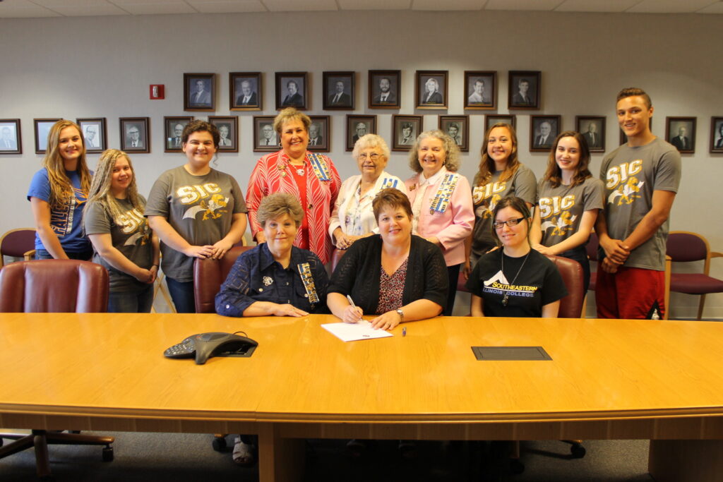Members of the Michael Hillegas Chapter of the National Society Daughters of the American Revolution (DAR) and members of the SIC Student Ambassadors and Student Government were present for the signing.