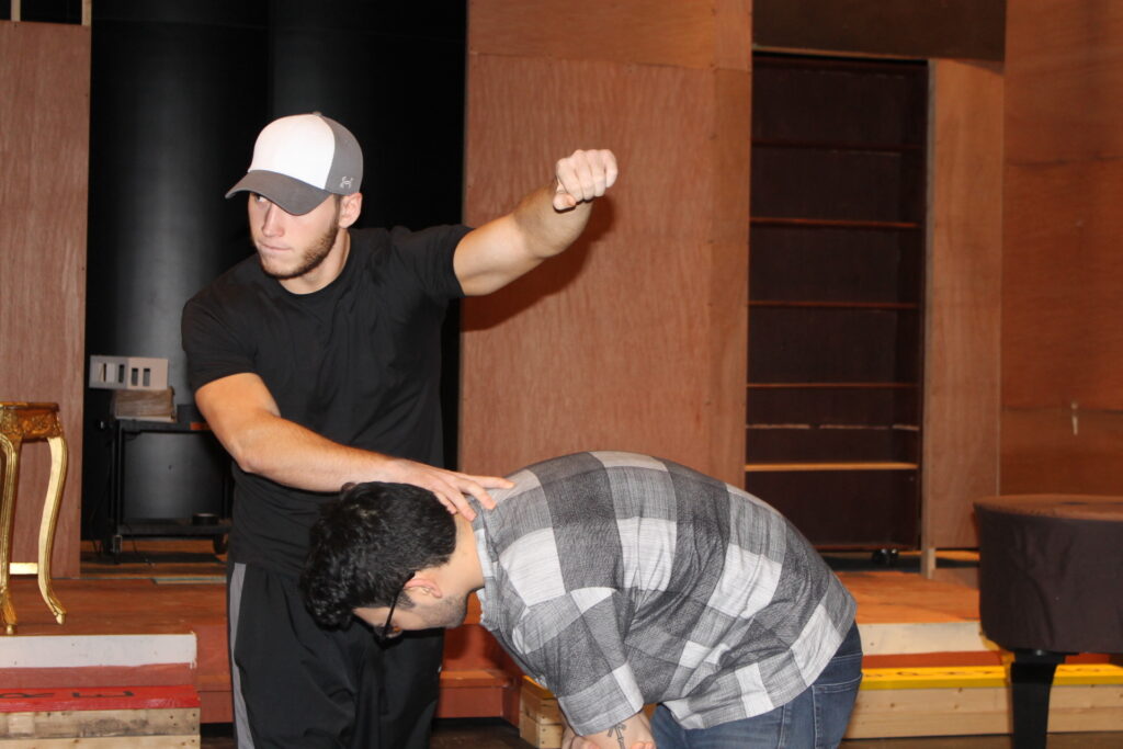 To assist with the stage combat used in the show, director Allan Kimball called in a former student turned professional wrestler to choreograph some genuinely believable fights. Austin Cravens (McLeansboro) wrestles with Ohio Valley Wrestling in Louisville and took time out of his busy schedule to practice with the students.
