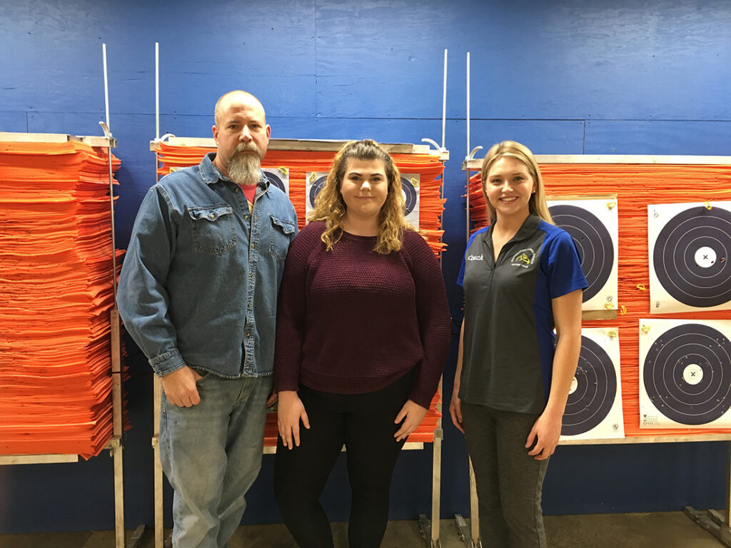 Head SIC Archery Coach Alli Armstrong welcomes Coach Paul McHargue and daughter/guest archer Molly McHargue to the Falcon Archers Team in SIC’s Indoor Archery Center.