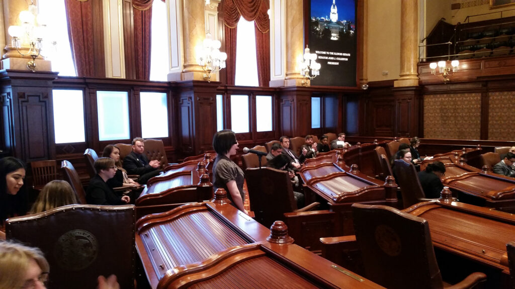 During competition students have the opportunity to debate bills in the actual House and Senate chambers in Springfield and in the Old State Capitol. This year over 300 students from 16 colleges and universities across the state participated.