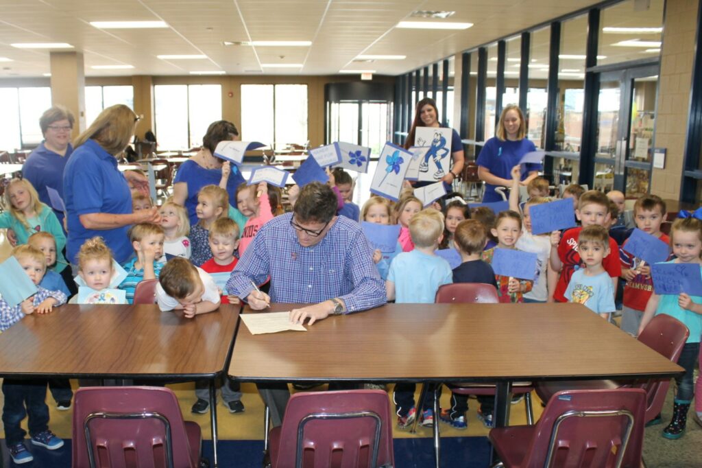 The children also got to parade through the halls of campus with Harrisburg Mayor John McPeek. Mayor McPeek signed a proclamation stating that April is Child Abuse Prevention month in Harrisburg on Tuesday, April 24, in cooperation with the Child Abuse Prevention (CAP) Coalition of Southern Illinois.