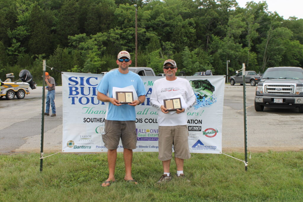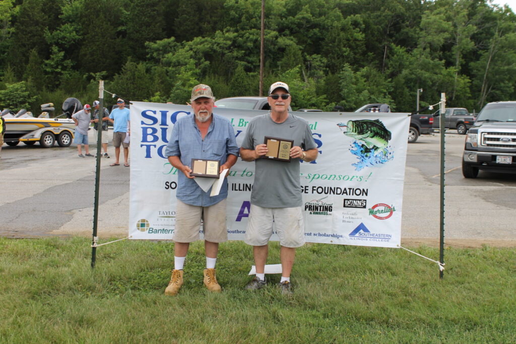 Thirty-two boats roared out of the Golconda Marina on the Ohio River Saturday morning, June 2, to compete in the annual Rodney J. Brenner Memorial Buddy Bass Tournament sponsored by the Southeastern Illinois College Foundation. The 64 anglers headed for their favorite fishing holes in hopes of catching enough large-mouth bass to win the event’s $1,603.80 first place prize money.