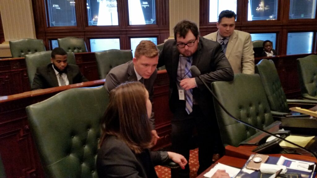 During competition students have the opportunity to debate bills in the actual House and Senate chambers in Springfield. This year over 245 students from 17 colleges and universities participated from across the state.