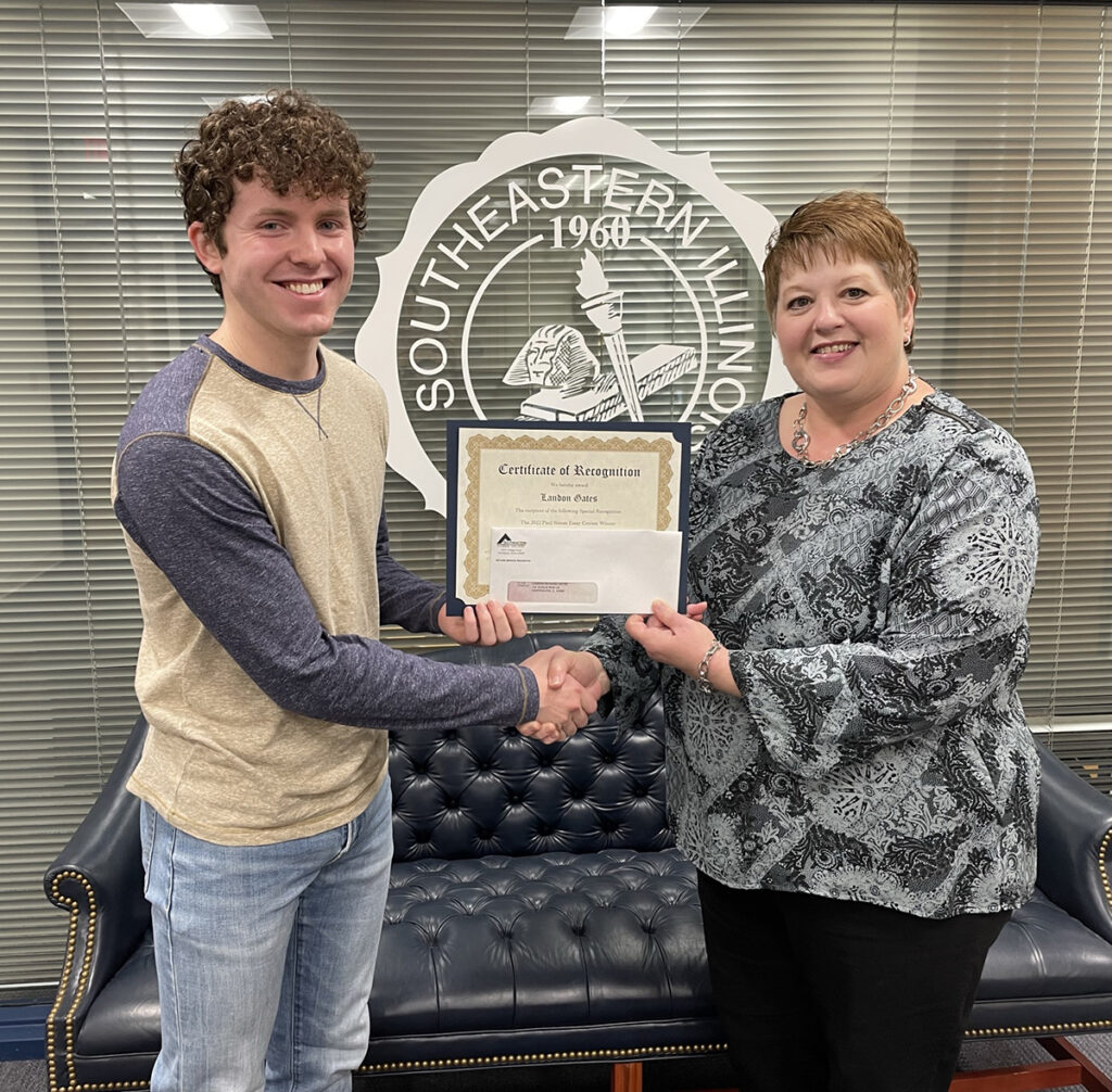 A student essay reflecting on how community college has been pivotal in enabling him to pursue his engineering path and move closer to “…solving complex challenges with real-world rewards and impact,” earned Landon Gates of Harrisburg the 2022 Paul Simon Essay award first at Southeastern Illinois College and then for the state of Illinois.