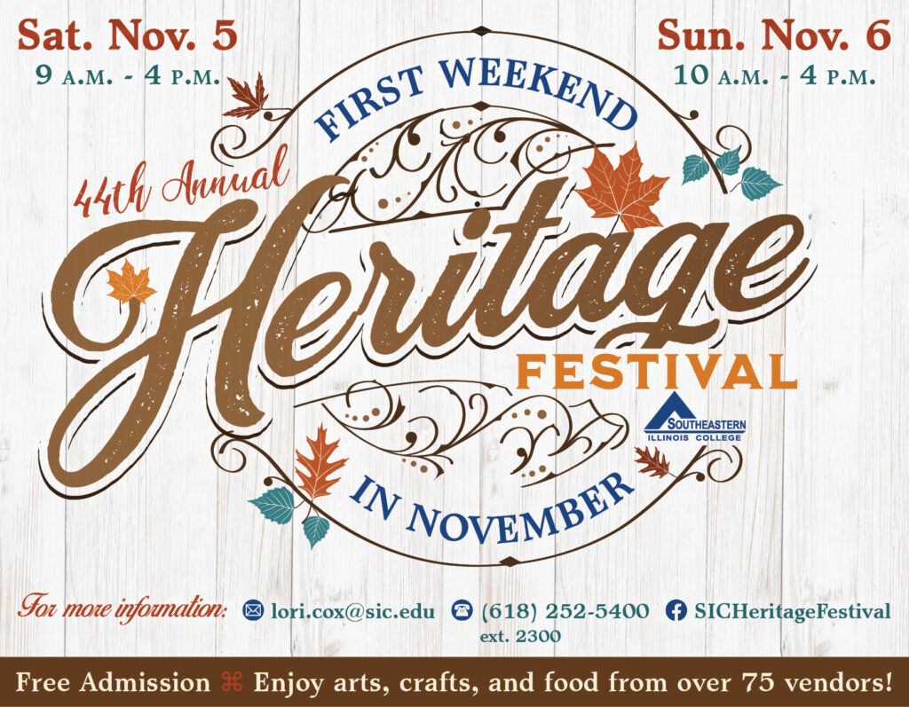 The 44th annual Heritage Festival at Southeastern Illinois College is back the first weekend in November. The event will be held Saturday, Nov. 5, 9 a.m. – 4 p.m. and Sunday, Nov. 6, 10 a.m. – 4 p.m.