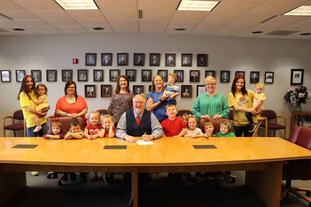 Southeastern Illinois College President Dr. Jonah Rice signs a proclamation declaring the official “Week of the Young Child™” April 8-12 with some friends from the…