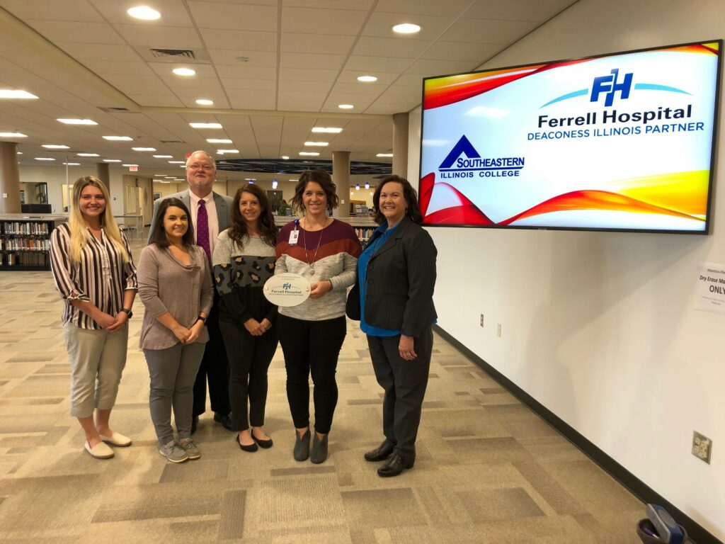 Ferrell Hospital’s Caleigh Bruce, Chief Compliance Officer-Director of Human Resources, and Allison Sisk, Marketing Specialist and Community Education Director, visit Southeastern Illinois College recently to…